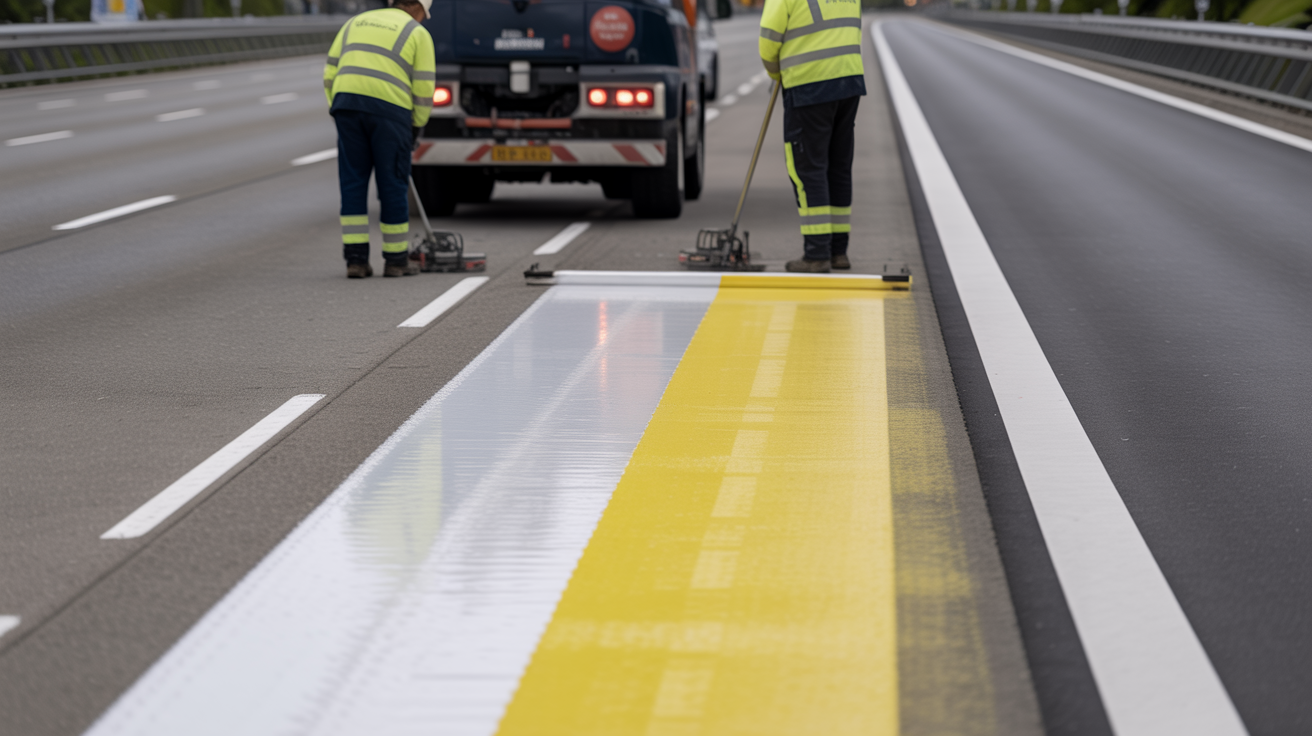 High-performance road markings for motorways and dual carriageways using durable, reflective materials.